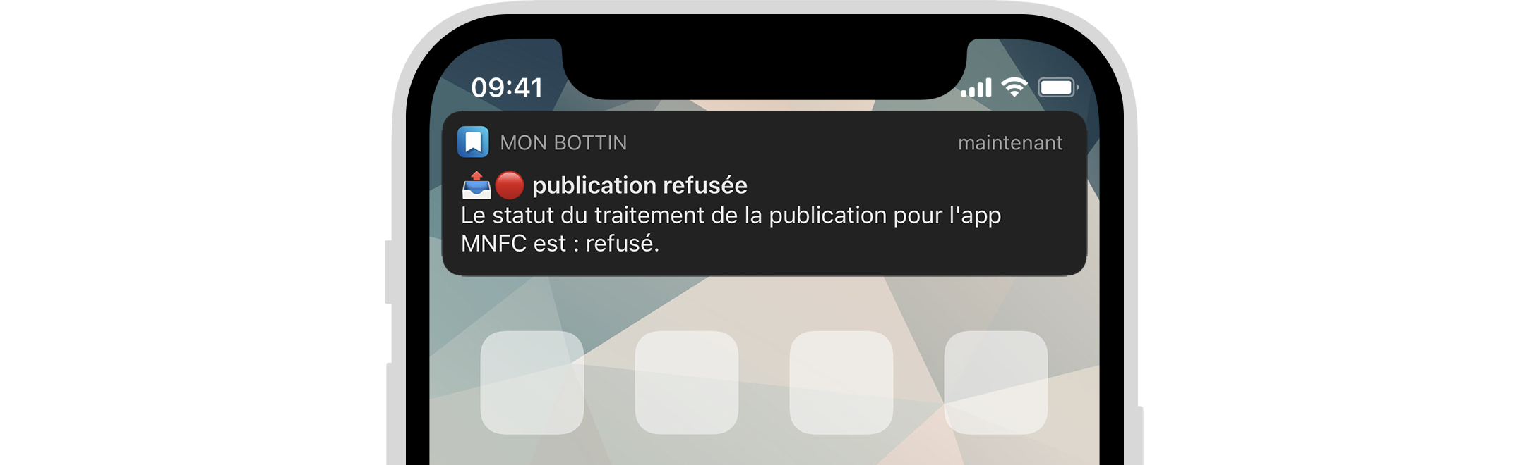 - 1er cas > Vous recevez une notification pour indiquer que vos modifications ont été approuvées et que la publication est terminée. Vos modifications sont en ligne et donc disponible dans l'app Mon Bottin. Le CMS est de nouveau accessible.